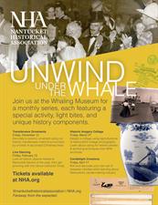 Unwind Under the Whale is a monthly series at the Whaling Museum, each featuring a special activity, light bites, and unique history components